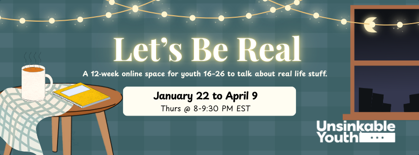 Let’s Be Real is a virtual space to be you, together. Let’s unpack the stuff we don’t always talk about—unspoken thoughts, confusing moments, and everyday pressures. Meeting weekly via Zoom in a relaxed, supportive space for real conversations, growth, connection, and showing up, just as you are. ♡